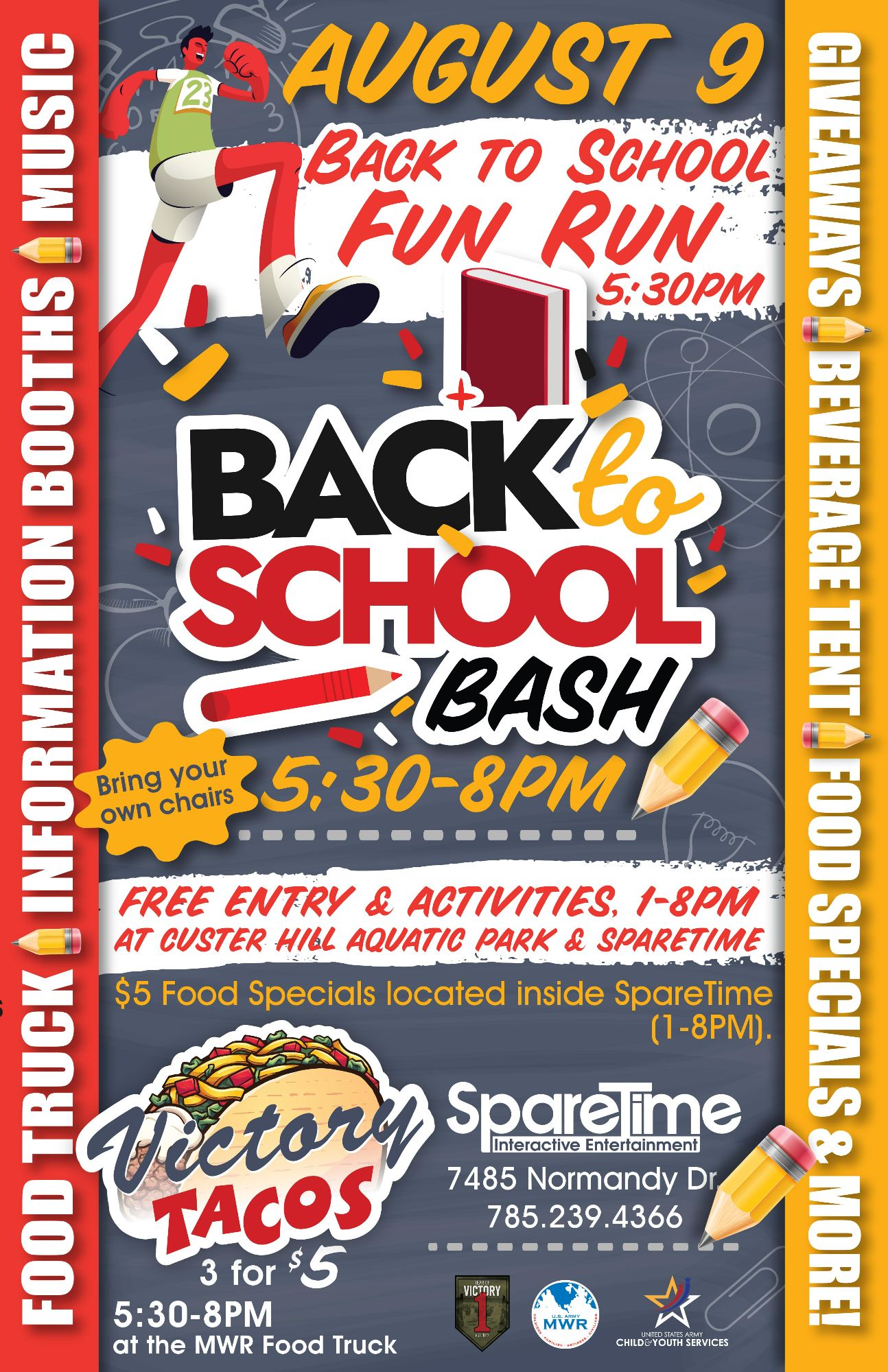 Free entry & activities, 1-8pm at Custer Hill Aquatic Park & SpareTime. $5 Food Specials inside SpareTime. Victory tacos available at the MWR Food Truck, 3 for $5.