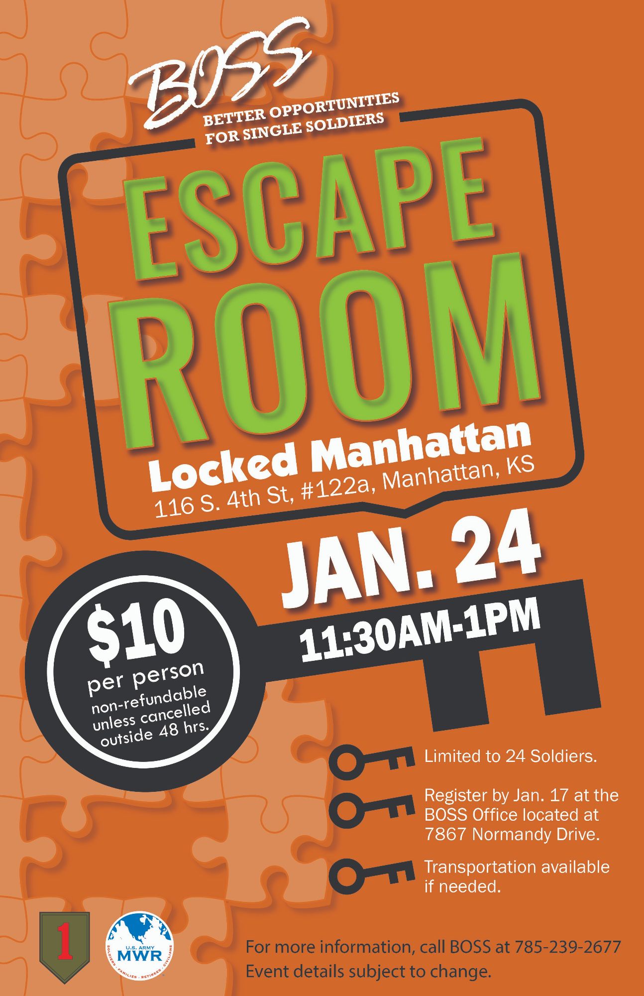 Register at BOSS Office located inside Warrior Zone