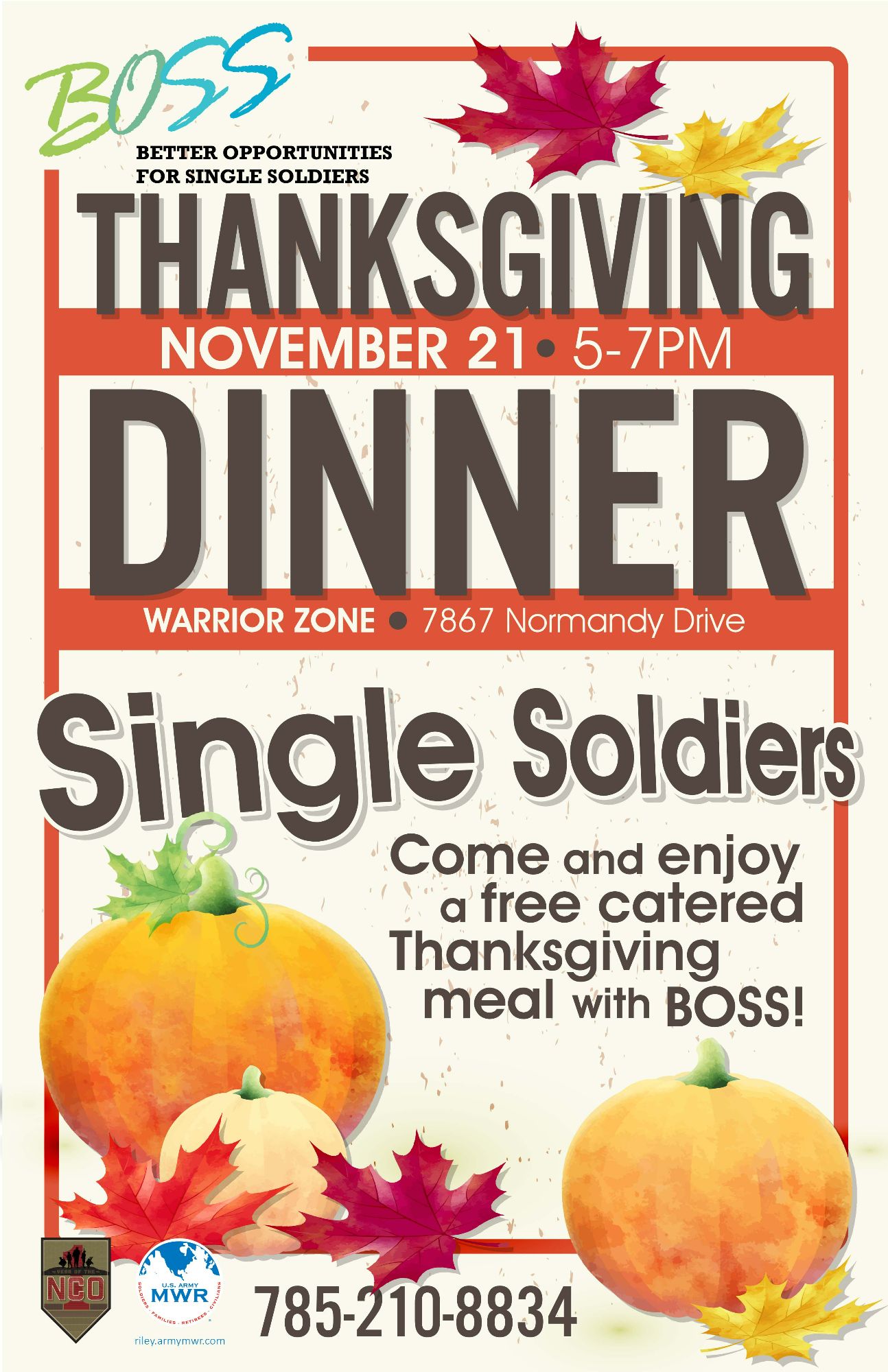 Single Soldiers, come enjoy a free catered Thanksgiving meal with BOSS!