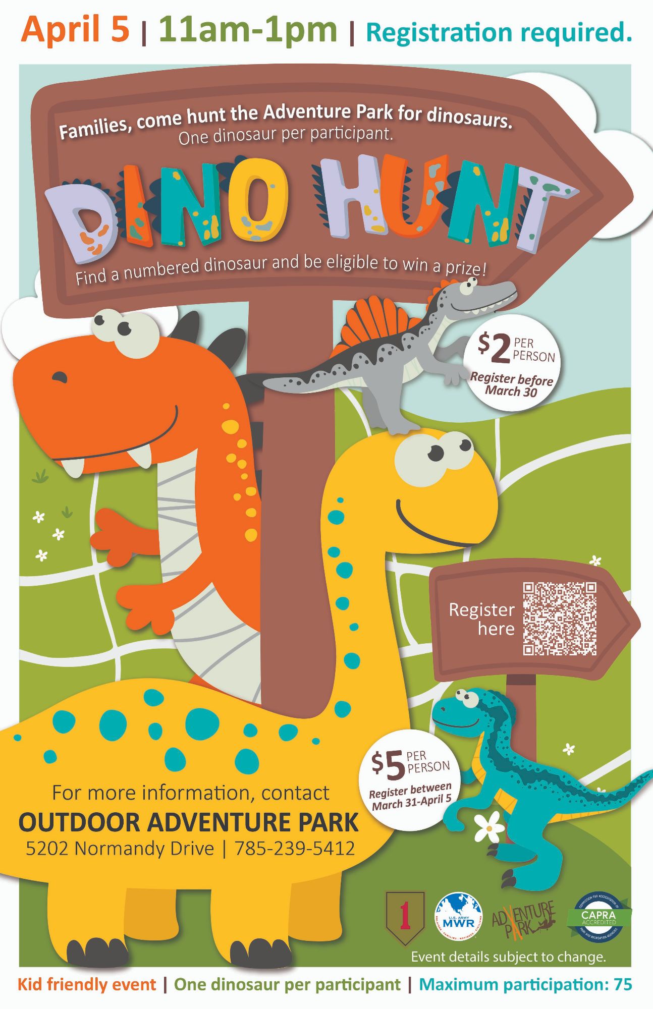 $2 per person before March 30 | $5 per person between March 31-April 5.