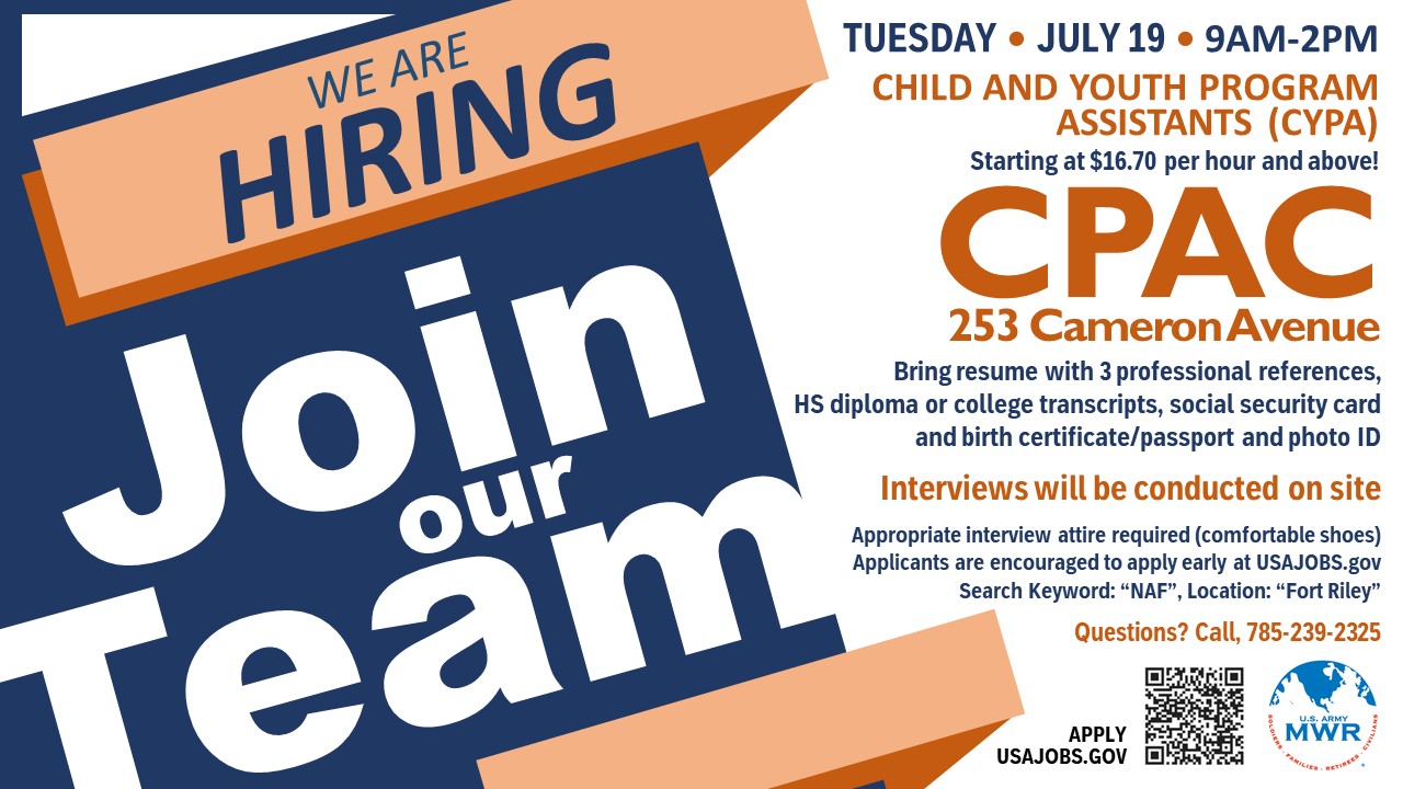 Family and MWR Hiring Event for Child and Youth Program Assistants (CYPA)