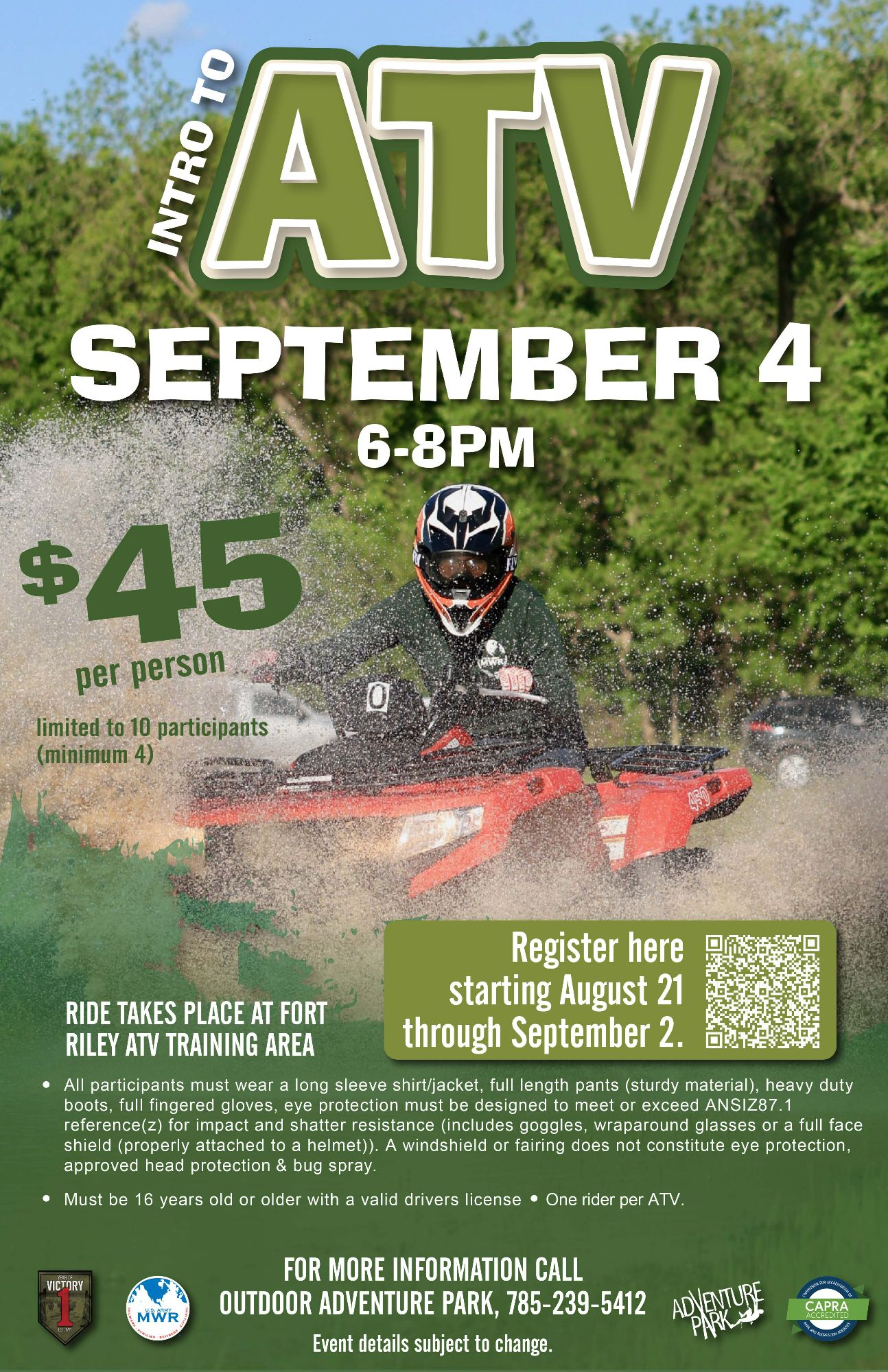 $45 per person (ages 16+ with valid driver's license.