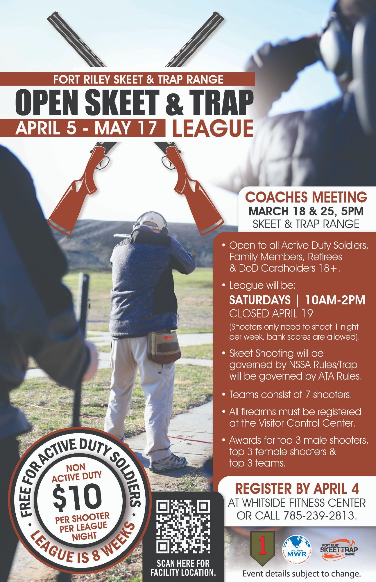 Free for Active Duty Soldiers | $10 per shooter per league night: Non Active Duty