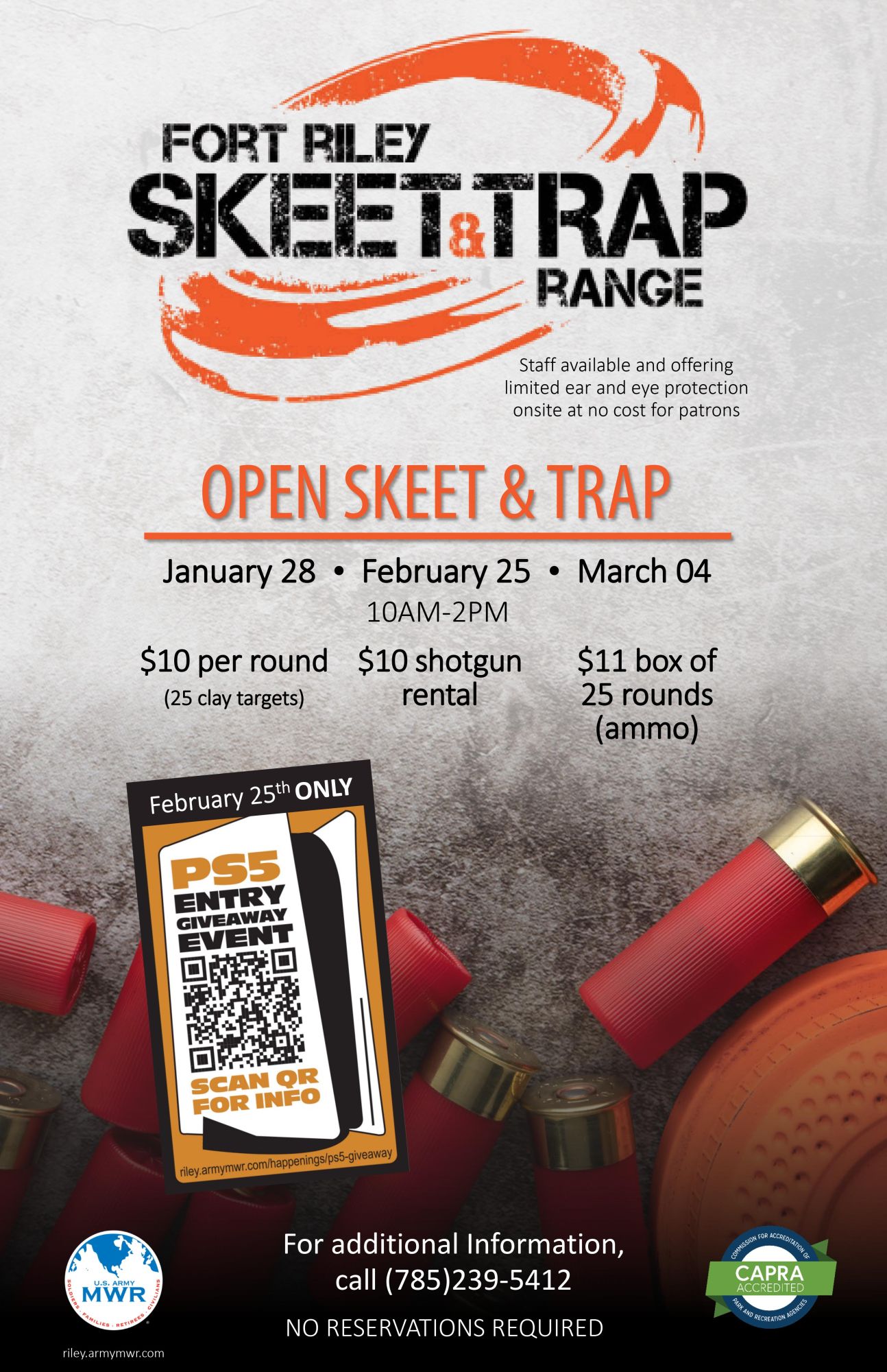 Shoot skeet and trap on select days at the Fort Riley Skeet & Trap Range.