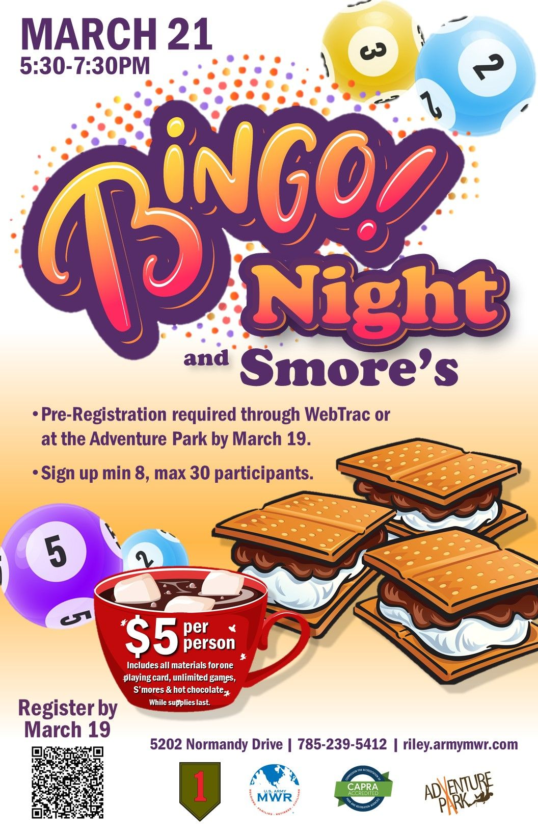 $5 per person (includes all materials for one playing card, unlimited games, S'mores & hot chocolate. While supplies last.
