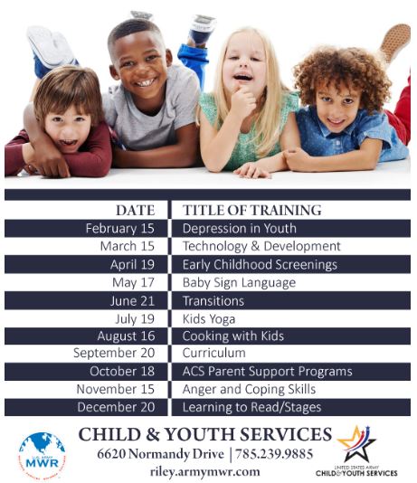 Classes will be conducted via MS Teams. Please follow Fort Riley CYS on Facebook for more information.