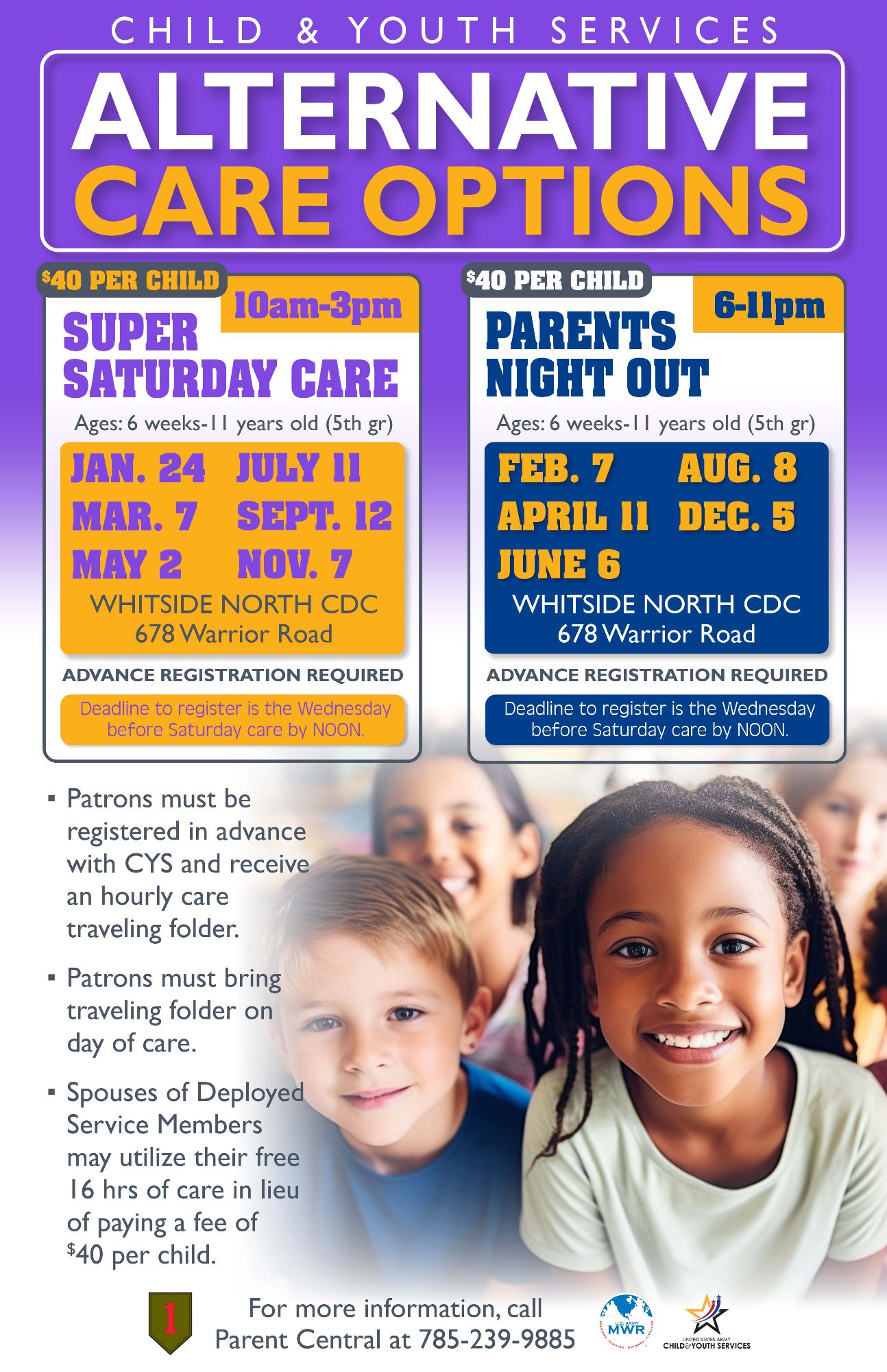 Advanced registration required. Contact Parent Central at 785-239-9885 for more information.