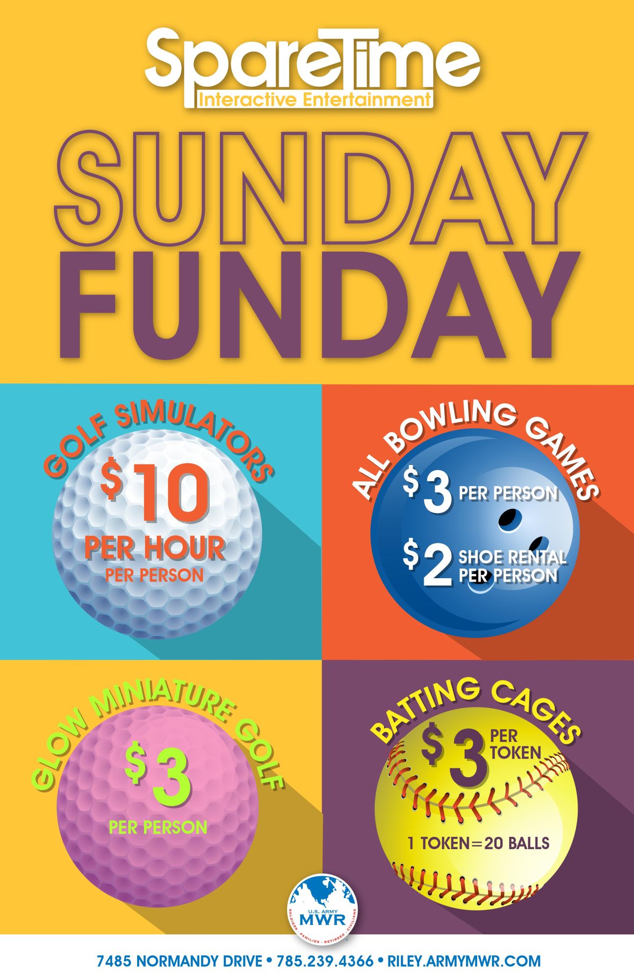 Every Sunday is Funday at SpareTime. Receive discounts on all your favorite Family-friendly activities.
