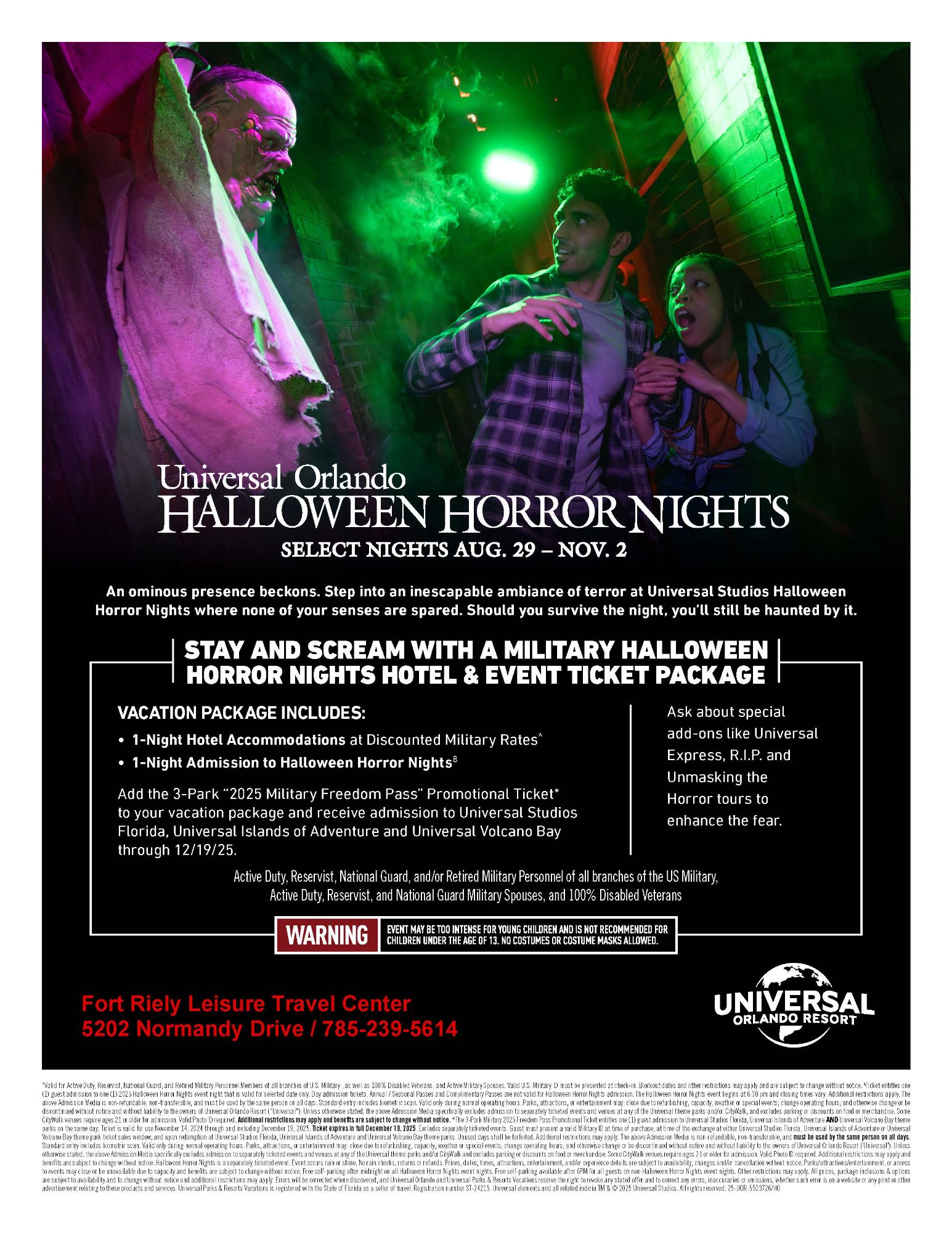 You can enjoy resort accommodations for two to six people for less than you pay for most hotels! Don’t forget to mention your Installation Number. It confirms eligibility and gives commission credit to your local MWR. Fort Riley is Installation #94.